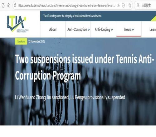 中國網球假球丑聞!三名中國球員因涉嫌操縱比賽遭ITIA禁賽罰款!