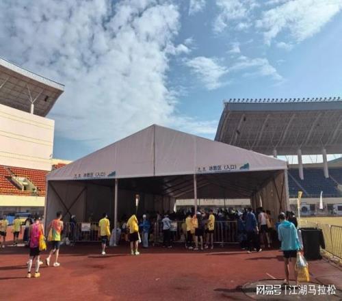 終點最大的變化,是體育中心拿出來用了,將拉伸、冰敷以及發(fā)獎儀式放在場內(nèi),且有多個適合拍照打卡的背景板,儀式感甚強。