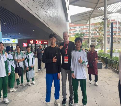 從五山地鐵站走到華農(nóng)體育場(chǎng)短短的幾百米,中國(guó)男排主教練維塔爾·海寧好幾次停下來(lái)和熱情的市民合影。海寧出生于比利時(shí),曾執(zhí)教波蘭男排、德國(guó)女排等隊(duì)伍,于2024年出任中國(guó)國(guó)家男子排球隊(duì)主教練?!霸诓ㄌm我很少會(huì)和別人合影,但是在中國(guó)我非常愿意從不拒絕?!闭f(shuō)罷,他攬著孩子們露出標(biāo)志性的笑容。